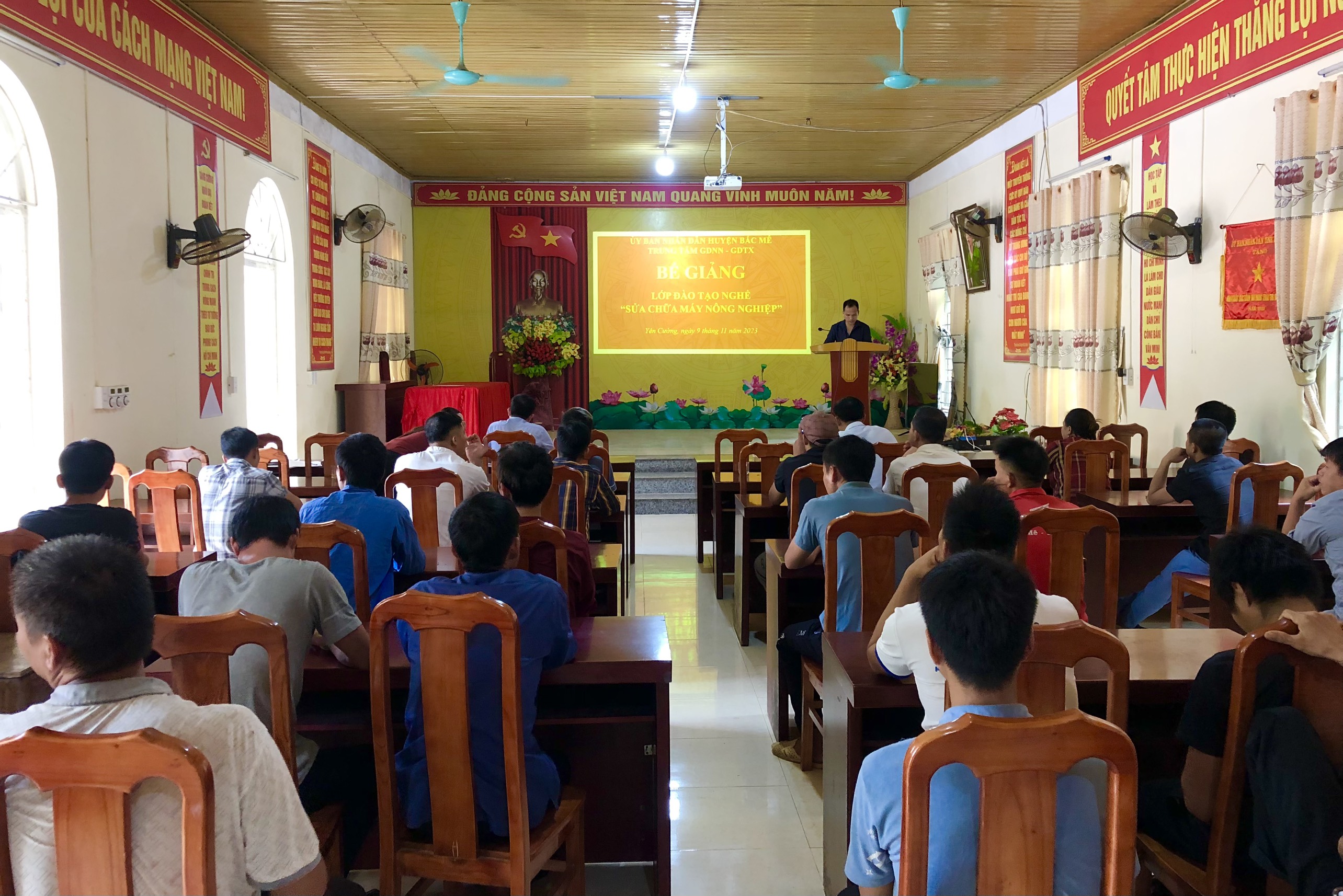 Qua hơn 02 tháng học tập, các học viên đã được trang bị những kiến thức về cấu tạo, nguyên lý hoạt động của máy nông nghiệp, hướng dẫn quy trình bảo dưỡng, vận hành máy, thao tác kỹ thuật tháo lắp và sửa chữa hư hỏng thông thường trong quá trình vận hành,… Các học viên đã được thực hành, vân dụng thành thạo các kiến thức cơ bản về vận hành và sửa chữa máy tại gia đình, lớp học đã tham gia sửa chữa thực tế được nhiều máy nông nghiệp trong xã như: máy cày bừa, máy gặt lúa. Kết thúc khóa học, 35/35 học viên đã được công nhận hoàn thành khóa học và được cấp chứng chỉ đào tạo.